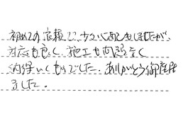 初めての依頼で、少々心配もしましたが、対応も良く、施工も問題なく、納得いくものでした。ありがとう御座居ました。