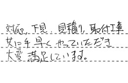 対応、下見、見積り、取付工事、共に手早くやっていただき、大変満足しています。