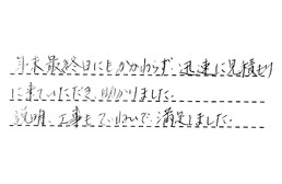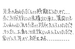 年末、最終日にもかかわらず、迅速に見積もりに来ていただき、助かりました。説明、工事もていねいで、満足しました。
