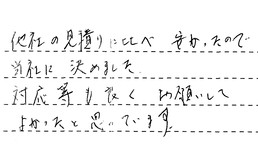 他社の見積りに比べ、安かったので、当社に決めました。対応等も良く、お願いしてよかったと思っています。