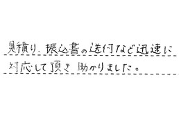 見積りから工事完了まで、説明も丁寧で、仕事に対する誠実さがありました。とても助かりました。ありがとうございます。