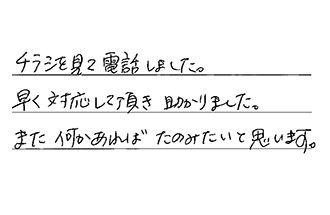 親切・丁寧な対応で、感心しました。今後も何かありましたら、利用させていただきます。ありがとうございました。