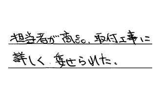 金額も安く、施工内容以外でも、安全の為にと、サービスでやっていただいた施工もあり、信頼できると感じました。