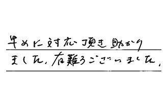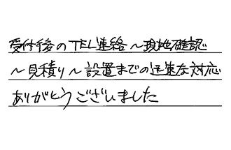 受付後のTEL連絡~現地確認~見積り~設置までの迅速な対応、ありがとうございました。
