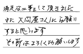 満足な工事をして頂きました。また大問屋さんにお願いすると思います。その節はよろしくお願いします。