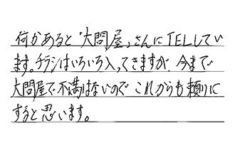 何かあると「大問屋」さんにTELしています。チラシはいろいろ入ってきますが、今まで大問屋で不満はないので、これからも頼りにすると思います。