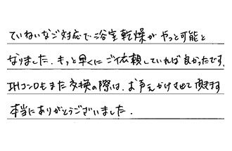 ていねいなご対応で、浴室乾燥がやっと可能となりました。もっと早くにご依頼していれば良かったです。IHコンロもまた交換の際は、お声がけさせて頂きます。本当にありがとうございました。
