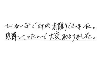 とても丁寧に作業してくださり、ありがとうございました。また何かありましたら、よろしくお願いします。