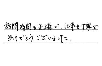 対応・仕事ともにていねいにして頂きました。ありがとうございました。