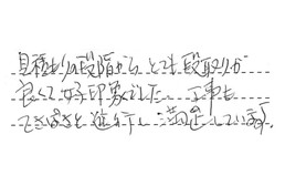 見積もりの段階から、とても段取りが良くて、好印象でした。工事もてきぱきと進行し、満足しています。