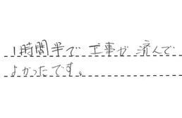 1時間半で、工事が済んでよかったです。