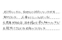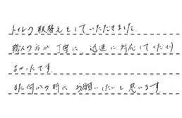 お忙しいのに、すみやかに対応していただき、助かりました。工事をしていただいた大問屋世田谷店の石井様は、色々細かいことなどを説明して下さり、お世話になりました。