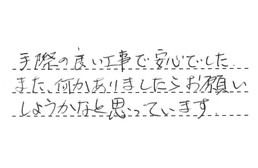 手際の良い工事で、安心でした。また、何かありましたら、お願いしようかなと思っています。