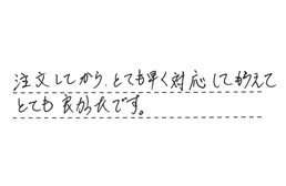 注文してから、とても早く対応してもらえて、とても良かったです。