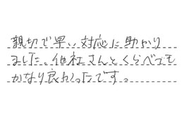 親切で早い対応に助かりました。他社さんとくらべても、かなり良かったです。