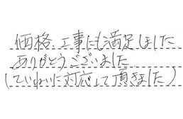 価格、工事にも満足しました。ありがとうございました。(ていねいに対応して頂きました。)