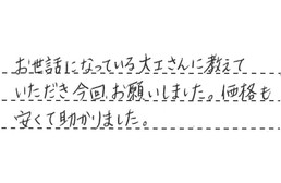 お世話になっている大工さんに教えていただき、今回お願いしました。価格も安くて助かりました。