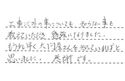 工事以外の事についても、知らない事を教えていただき、勉強になりました。もう少し早く大問屋さんを知っていればと思いました。感謝です。