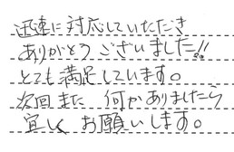 迅速に対応していただき、ありがとうございました!とても満足しています。次回また、何かありましたら、宜しくお願いします。