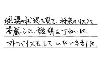現場の状況を見て、将来のリスクを考慮した説明を、丁ねいにアドバイスしていただきました。