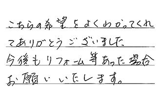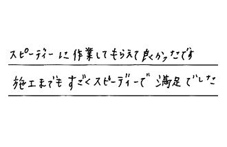 スピーディーに作業してもらえて良かったです。施工までもすごくスピーディーで、満足でした。