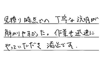 見積り時点での丁寧な説明が解りやすかった。作業も迅速にやっていただき、満足です。