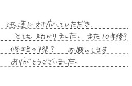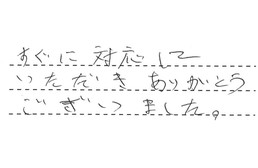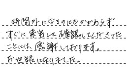 時間外になるのにもかかわらず、すぐに来宅して確認してくださったことには、感謝しております。お世話になりました。