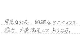 早急な対応、的確なアドバイスを頂き、大変満足しております。