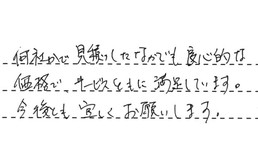 何社かで見積りしたなかでも良心的な価格で、サービスともに満足しています。今後とも宜しくお願いします。