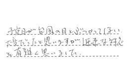 予定日が台風の日とぶつかってしまい、大変だったと思いますが、迅速な対応を有難く思いました。