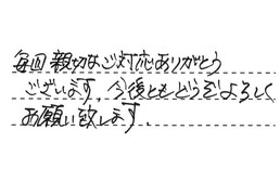 毎回親切なご対応、ありがとうございます。今後ともどうぞよろしくお願い致します。