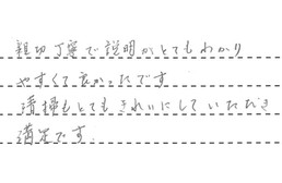親切・丁寧で、説明がとてもわかりやすくて、良かったです。清掃もとてもきれいにしていただき、満足です。