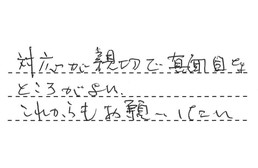 対応が親切で、真面目なところがよい。これからもお願いしたい。