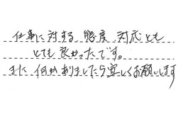 仕事に対する態度・対応とも、とても良かったです。また何かありましたら、宜しくお願いします。