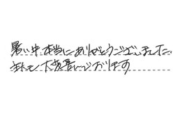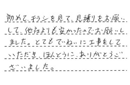 初めてチラシを見て、見積りをお願いして、他社よりも安かったので、お願いしました。とてもていねいに工事をしていただき、ほんとうにありがとうございました。