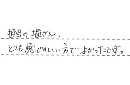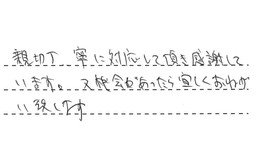 親切・丁寧に対応して頂き、感謝しています。又機会があったら、宜しくおねがい致します。