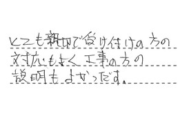 とても親切で、受け付けの方の対応もよく、工事の方の説明もよかったです。
