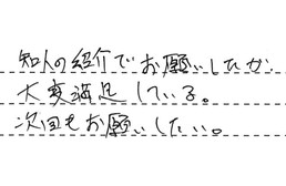 知人の紹介でお願いしたが、大変満足している。次回もお願いしたい。