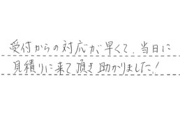 受付からの対応が早くて、当日に見積りに来て頂き、助かりました!