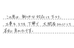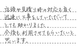 店頭や見積り時の対応も良く、迅速に工事をしていただいて、とても助かりました。今後も利用させてもらいたいと思います。