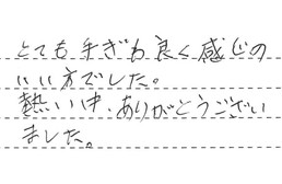 とても手ぎわ良く、感じのいい方でした。暑い中、ありがとうございました。