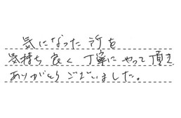 気になった所を、気持ち良く丁寧にやって頂き、ありがとうございました。