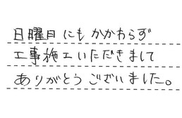 日曜日にもかかわらず、工事施工いただきまして、ありがとうございました。