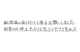 給湯器の取り付け工事をお願いしました。約束の日時をきっちりと守ってくださり、良かった。