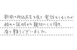 新聞の折込広告を見て電話をしましたが、始めの説明から親切にして頂き、有り難うございました。