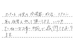 アパート10室の給湯器・ガス台・エアコン等の取替をやって頂いてます。いつもていねいな工事・対応で、感謝しております。