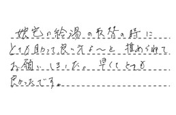 娘宅の給湯の取替の時に、とても助かって良い方よと勧めてくれて、お願いしました。早くてとても良かったです。