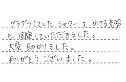 グラグラしていたシャワーをかける部分も、固定していただきました。大変助かりました。ありがとうございました。