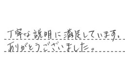 丁寧な説明に満足しています。ありがとうございました。