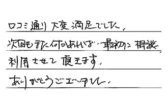 口コミ通り、大変満足でした。次回もまた何かあれば、最初に相談・利用させて頂きます。ありがとうございました。